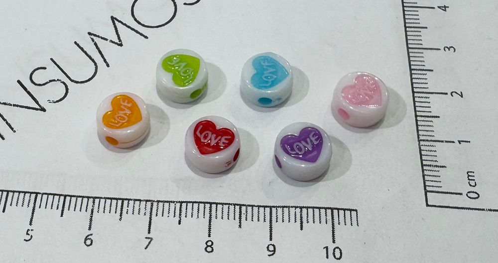 INF - Pasante Plástico Pastilla 179 Love - 9mm - Blanco y Multicolor - 15gr