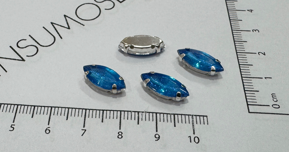 Gema 1 Navette - 15x7mm - Celeste Oscuro con Glitter - 10u